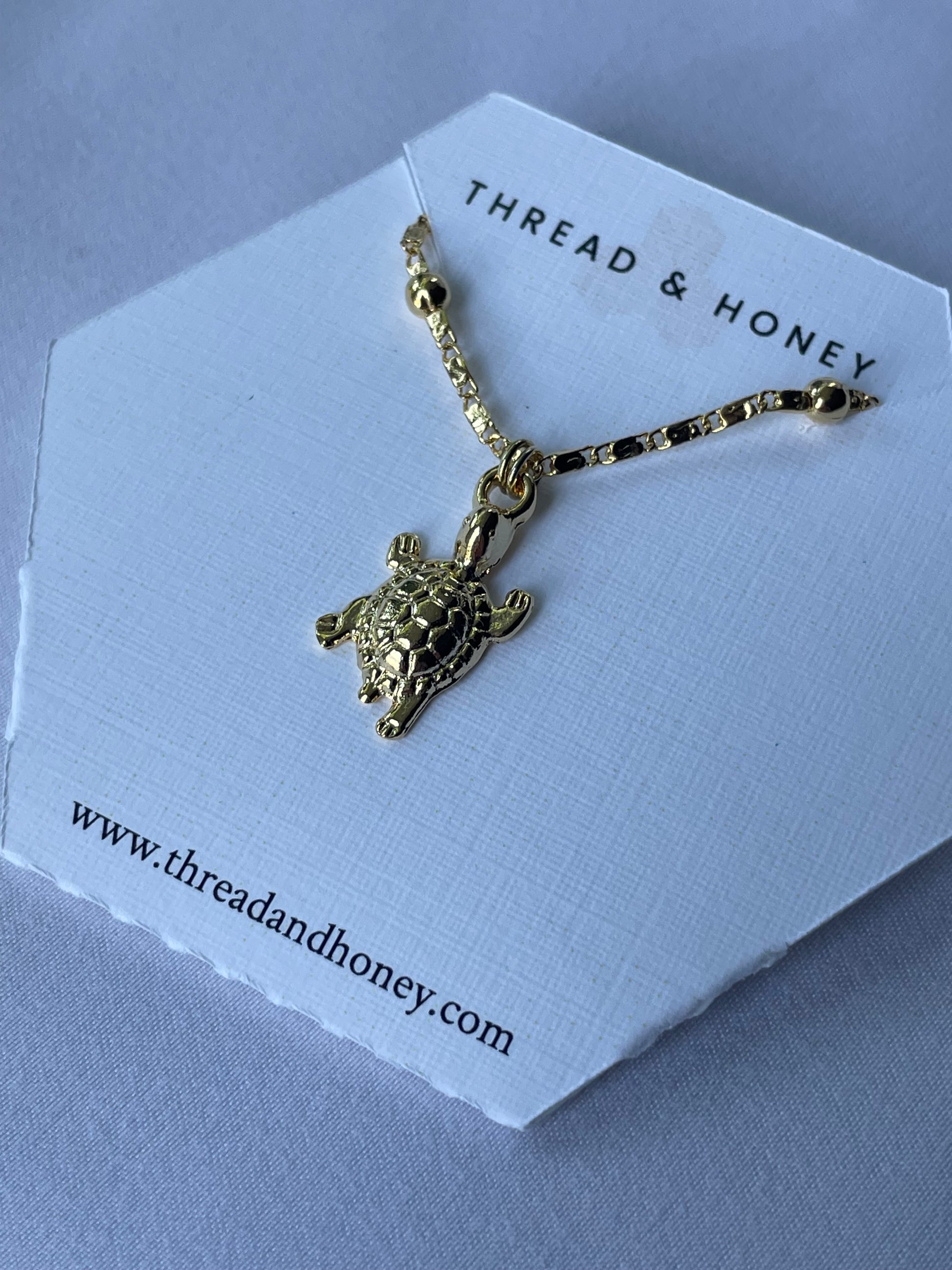 Baby Turtle Necklace w/ 17" 24K Plated Beaded Box Chain