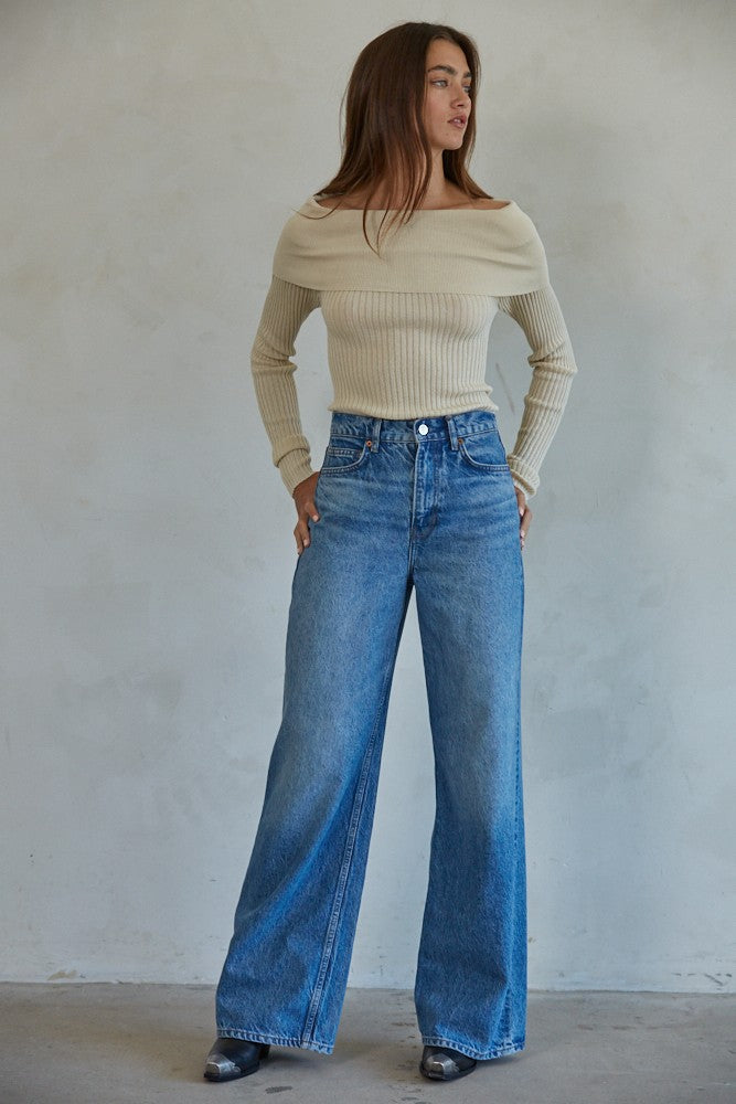 Our First Glance Top is a wardrobe essential. This knit sweater top features a classically beautiful off-shoulder silhouette, long sleeves, and a soft ribbed knit material. Easily dress this elegant top is up for a night out or down for a casual, but so cute, day.