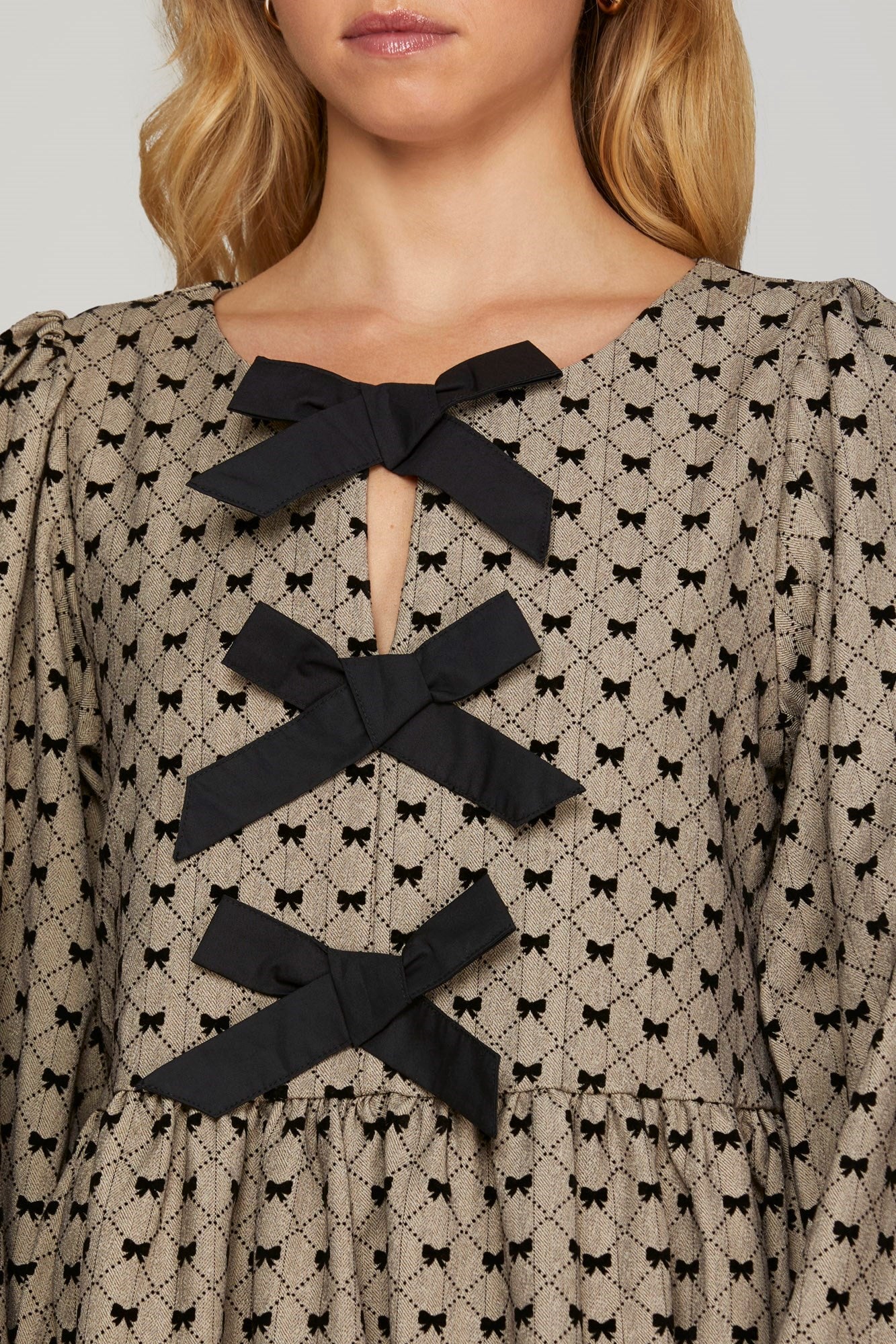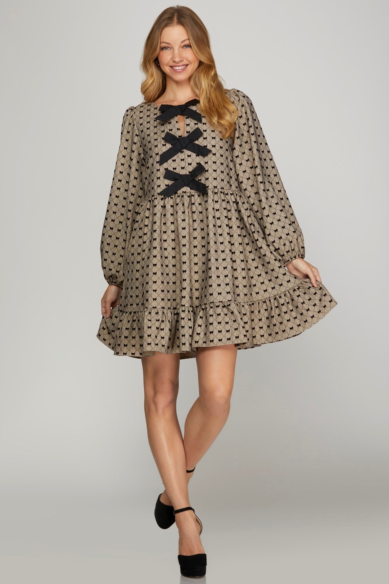 Flocked Bow Woven Dress