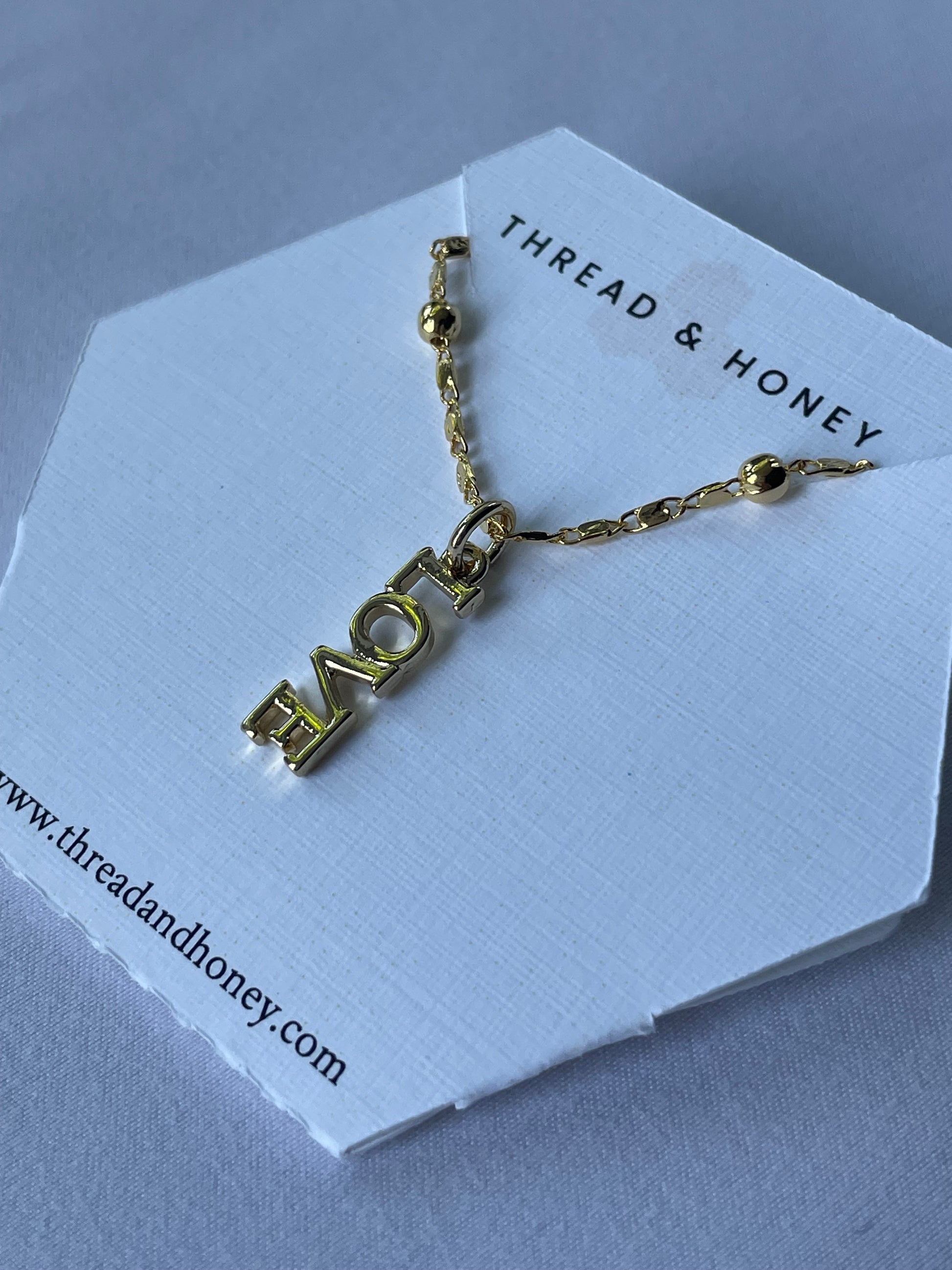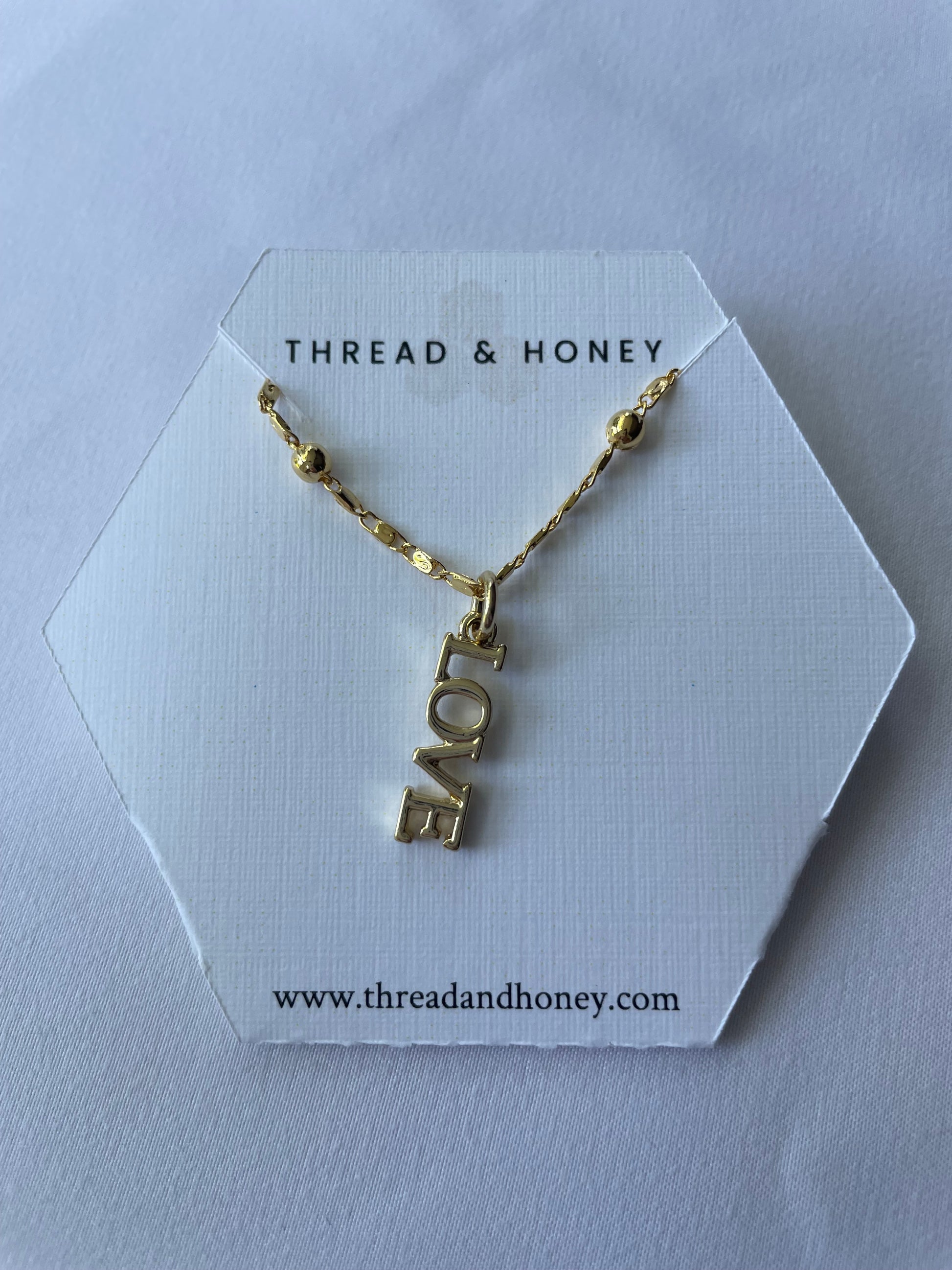 Love Pendant Necklace w/ 17" 24K Plated Beaded Box Chain