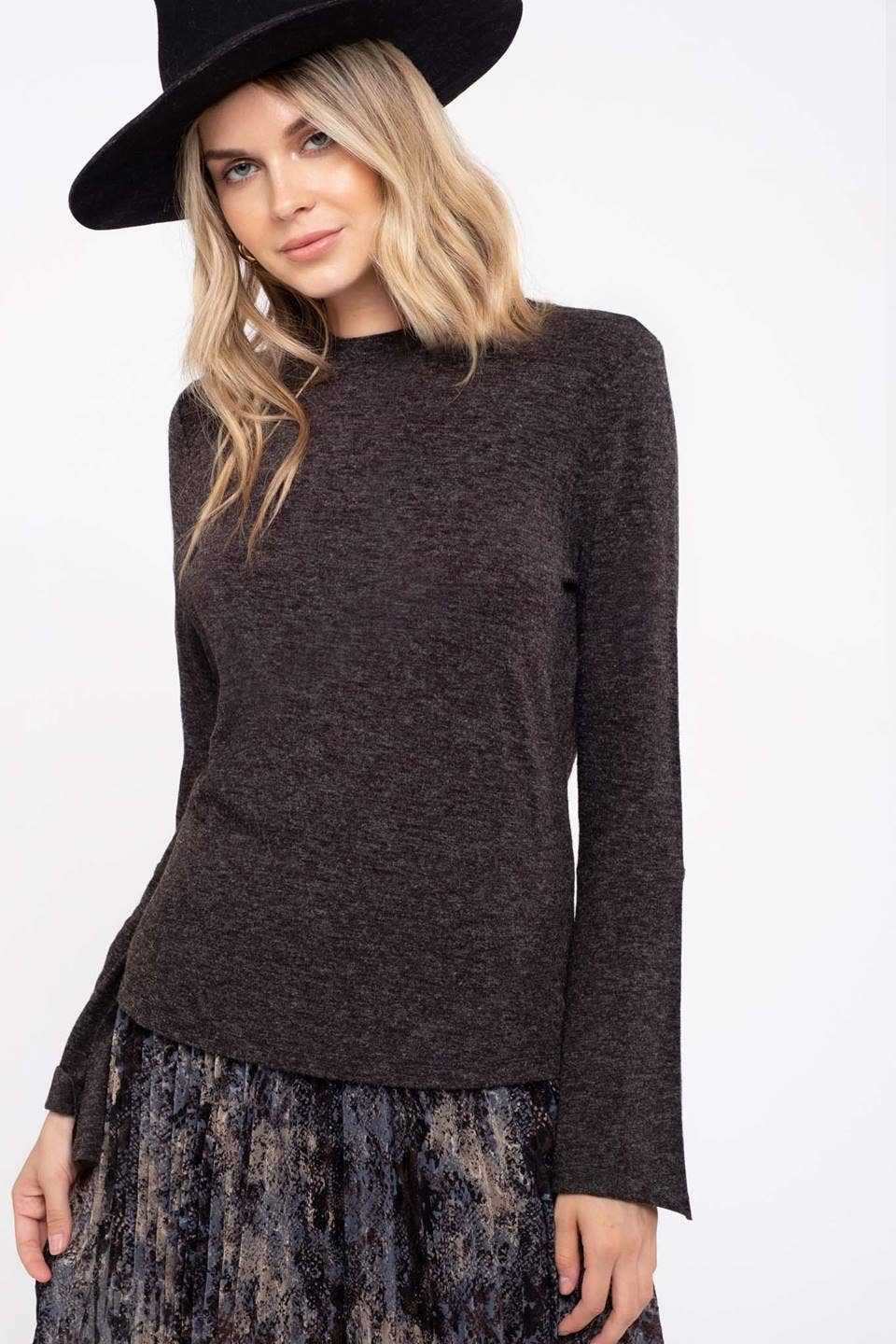 Our Lynsey Top features a soft knit material, crew neckline, and fun bell sleeves!