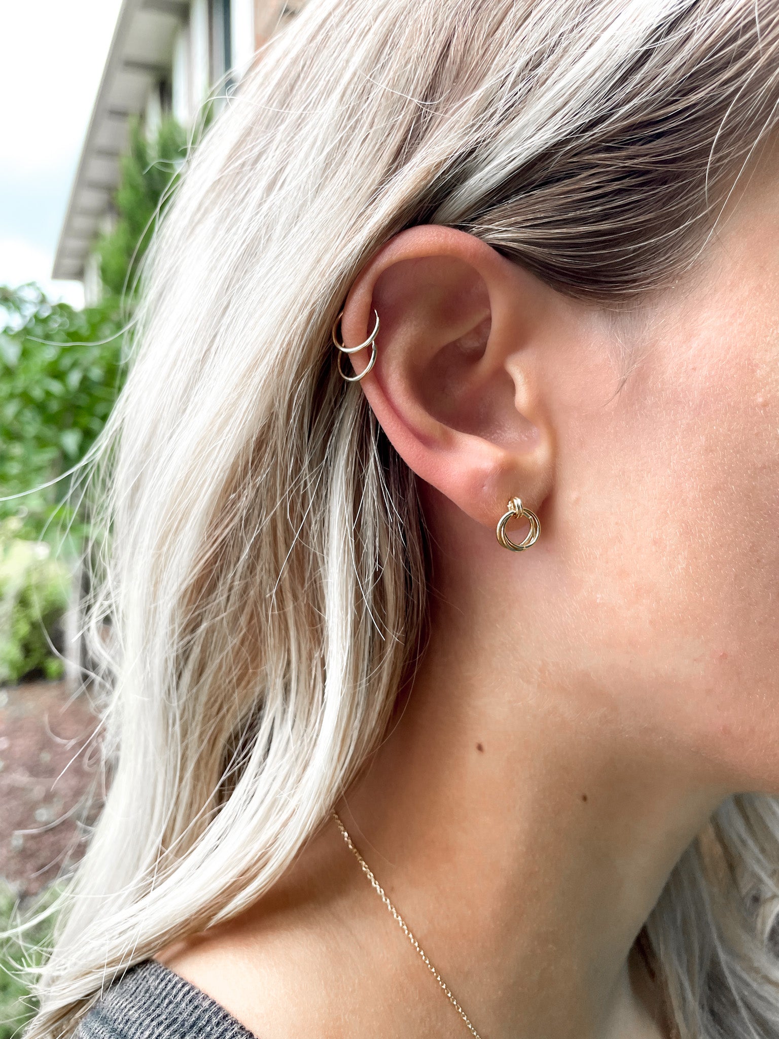 Our Mini Hoop Knot Stud Earrings are the cutest additional touch to your look!