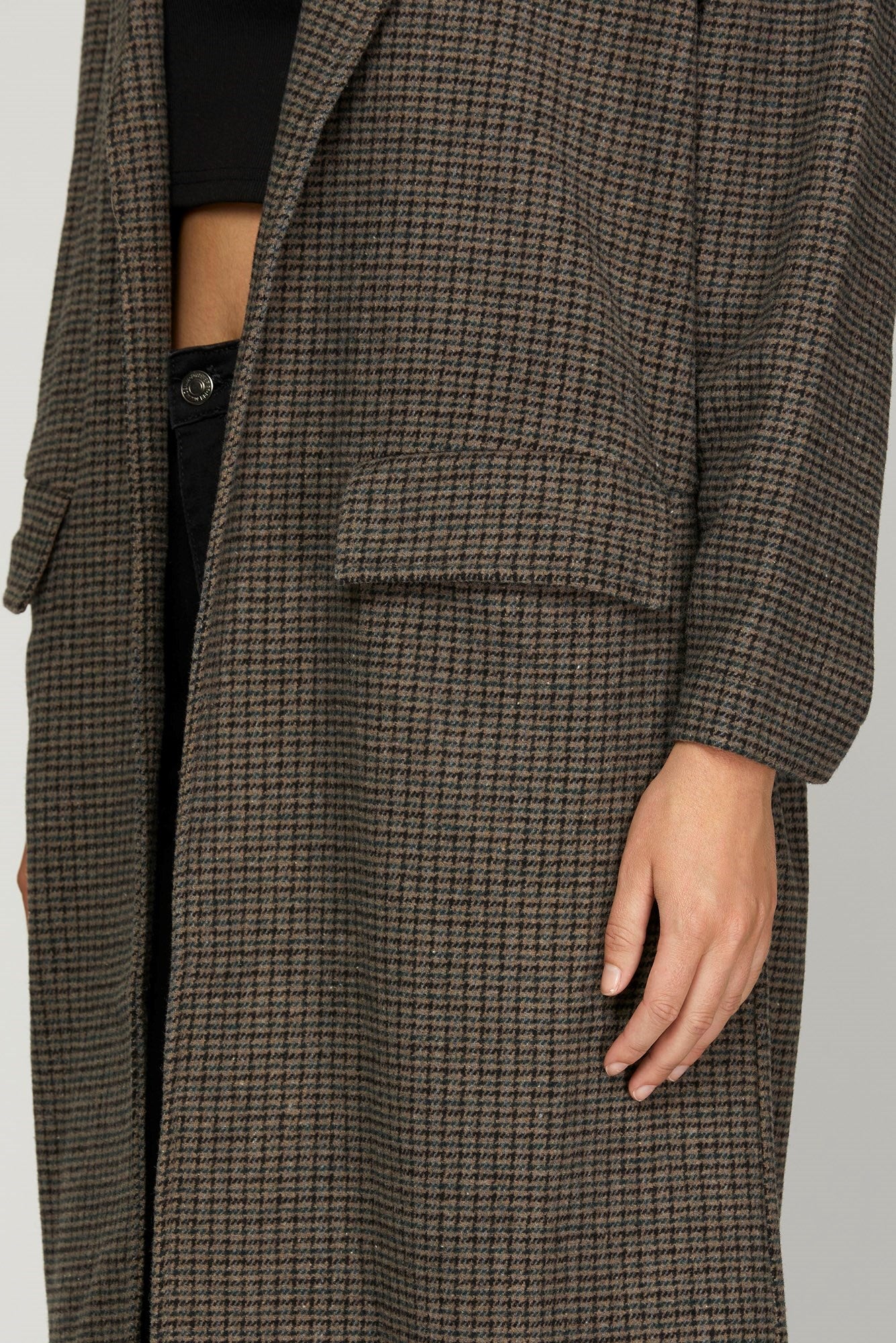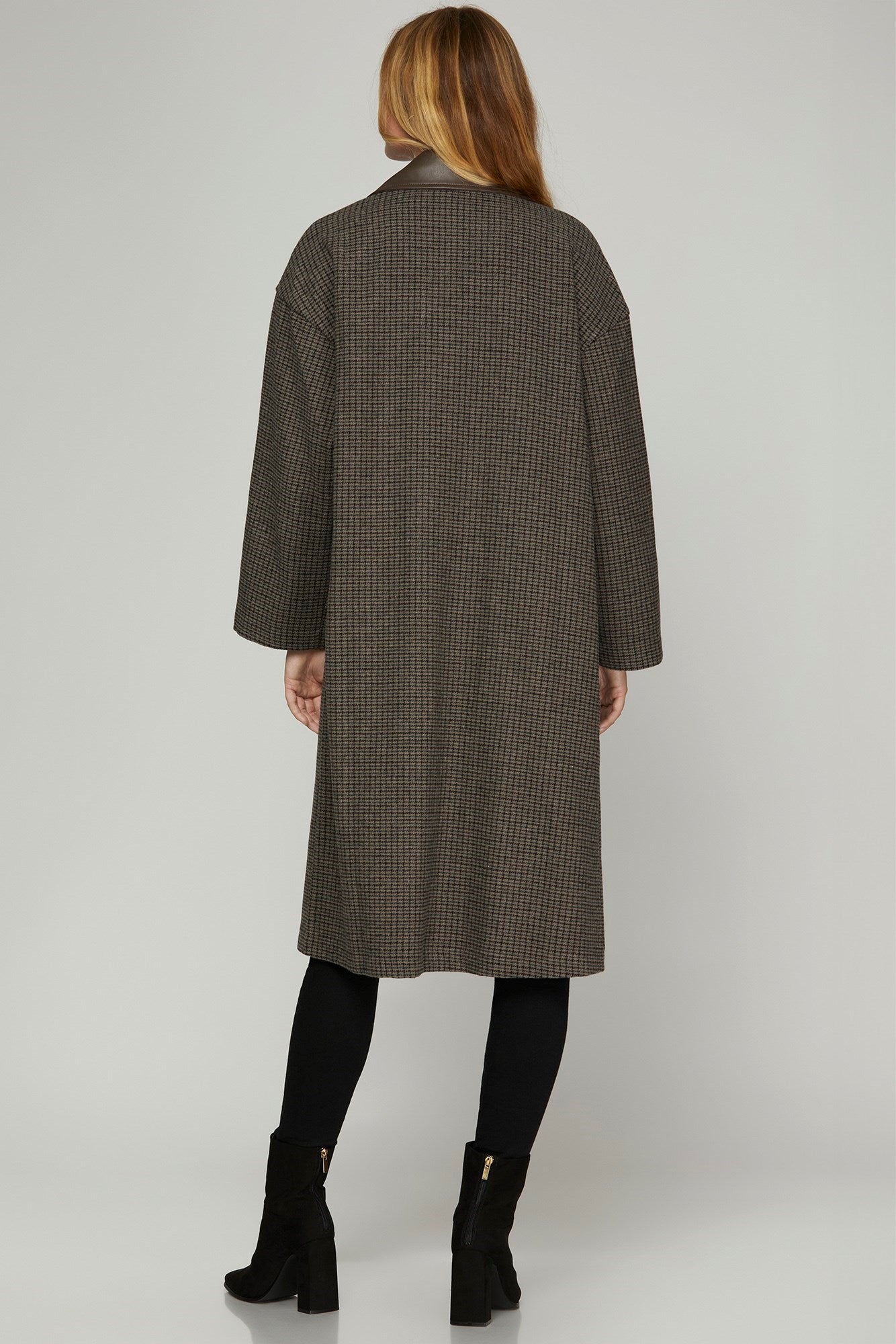 Oversized Check Open Front Coat