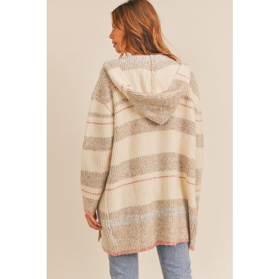 Our Chloe Cardigan features double side pockets, super comfortable rib knit material, and a hood! Perfect layered over a basic tee/bodysuit paired with leggings or jeans!